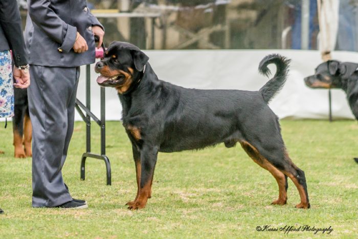 He has also started competing in Rally Obedience and has achieved his Rally Novice (RN) Title and his Rally Advanced (RA) Title. Blaze placed 1st in Rally Novice in the Dogs SA Obedience Advisory Committee 2016 State Championships Rally Trial on the 25/09/2016 with a score of 98/100! Blaze gained his Rally Advanced Title only 6 weeks after he gained his Rally Novice Title - a truly impressive feat. He placed 3rd in Rally Advanced A at the Dogs SA Obedience Advisory Committees Rally Trial (PM Trial) on the 20/05/2017 and also placed 3rd in Rally Advanced A at the Rottweiler Club of South Australia's Restricted Rally Trial on the 17/06/2017.
