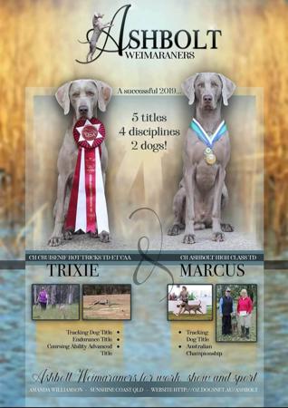 ASHBOLT strives for the all round Weimaraner that is competitive in the Show Ring and out in the Field.