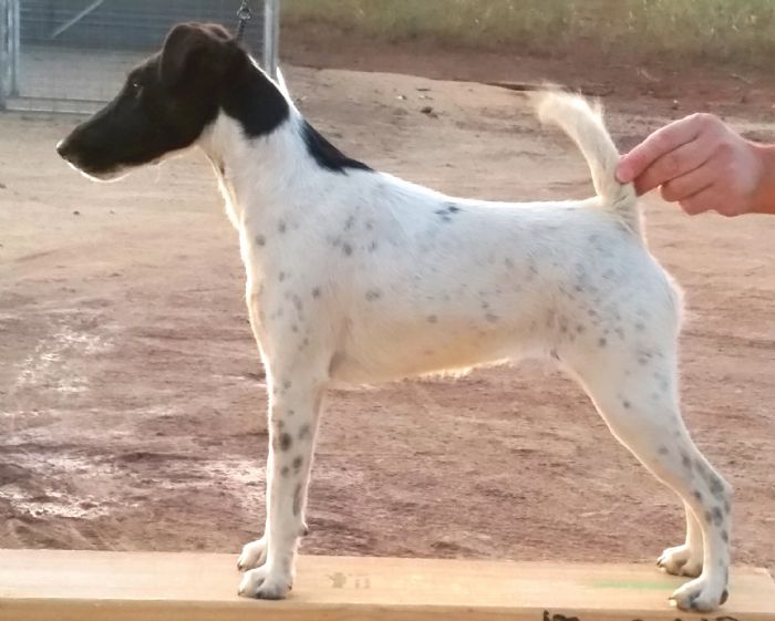Zena is developing into a very nice balanced bitch. She has a beautiful head along with very nice expression, flows nicely from neck, shoulders into a short back, Zena has very clean movement and certainly has the true terrier attitude.