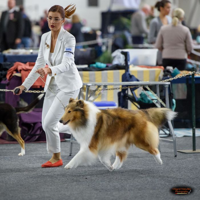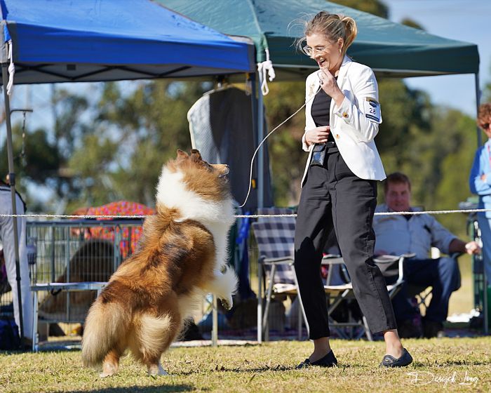 Kenny broke a few incisors during an accident playing a game of fetch. Her final swan song before having them removed was the Collie Club of Victoria Specialty Show under breeder-judge Mrs S Mallia (WA "Arranbrae") where she took the ultimate accolade of BEST IN SHOW. She loved the ring and wasn't ready to retire, however that's the way it goes, so now she lives vicariously through the pursuits of her children; dam of 4 Champions.