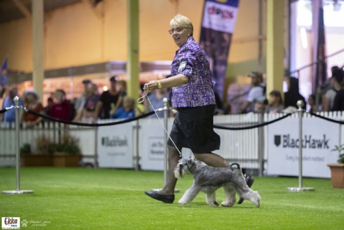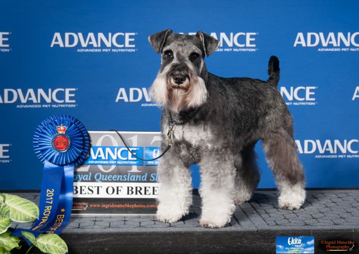 Aus Ch Nellabah Ava Gardner was awarded BOB at Royal Brisbane Show 2017 (our first royal) against an entry of 26 quality miniature schnauzers. Then backed it up in 2018 with RUBOB and bitch challenge.