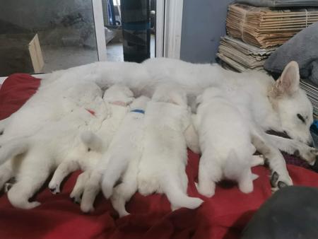 We currently have 6 Long Coat White Swiss Shepherd Puppies looking for their forever homes in 5 weeks time. 2 girls and 4 boys. The parents of the litter are well-adjusted, outgoing dogs with sound temperaments. The father has gained his Australian Champion title along with his Rally Novice Dog sport title. The mother is well on her way to obtaining her Australian Champion title. The puppies would suit well-adjusted active pet homes, and for those who wish to partake in other ANKC Dog Sports, i.e., Rally, Obedience Trialling, Sprint Dog, etc. For Expressions of interest, please contact Chris Harris on 0402095512 or email onwoottn@gmail.com