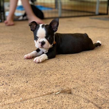 Pedigree Boston Terrier Male – Quality Lines We have a beautiful pedigree Boston Terrier male available to the right home. Details: • Name: Parker (Drumsara Superior Legacy) • Age: 8 months old • DOB: 28/07/2025 • Sex: Male • Colour: Brindle & White • Registered with Dogs Australia (ANKC) • Microchipped & DNA recorded This boy comes from exceptional, well-established bloodlines, including champion lineage on both sides. He has been bred with a focus on quality, temperament, and breed standard. About Parker: • Confident, affectionate, and playful nature • Raised in a family environment • Well-socialised and used to everyday household activity • True Boston personality – loyal, intelligent, and full of character Ideal home: He would suit a loving family, companion home, or someone familiar with the breed who appreciates quality breeding. Inclusions: • Pedigree papers • Microchipped • Up to date with vaccinations (adjust if needed) • Health checked Located in QLD (Stockleigh area) Genuine enquiries only – we are looking for the best possible home 0487 194 236 - please call or text emails are not monitored