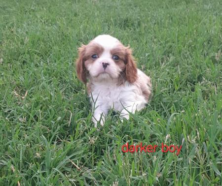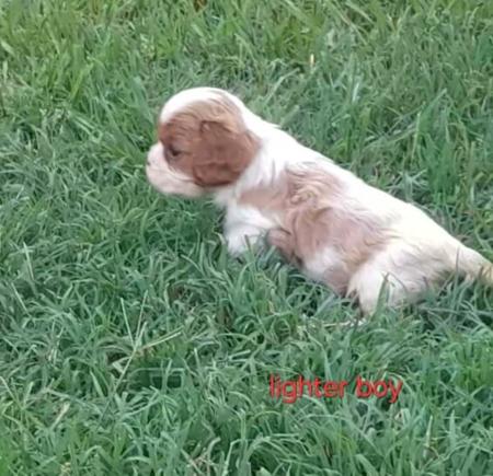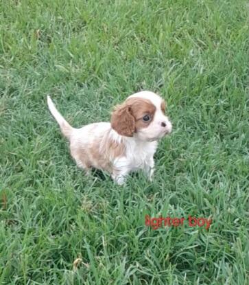 Blenheim puppies available. Paris & Puzzle gave us a beautiful litter of pups on 8th February. 2 boys & 1 girl (sold) are available to loving pet homes. They are developing nicely and will be ready to move to their new homes from 5th April. The parents are both show dogs, have lovely temperaments, and have current heart certificates. Mother has been DNA tested. The puppies have had their first vaccination and been microchipped. Puppies will be regularly wormed and weaned onto a combination of raw natural diet and premium puppy food. Puppies will be registered with Dogs Qld, on the limit register. Our puppies are house reared, well handled (lots of cuddles) so are used to the comings and goings, including associated noises, of a household. For further information on your new family member please give Jeff or Ann a call.