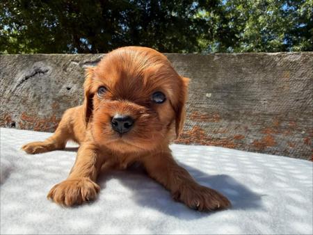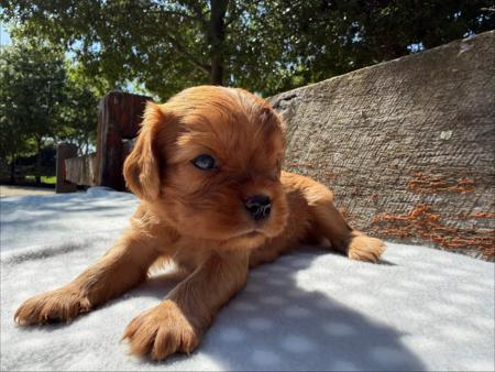 We have a gorgeous litter of Cavalier King Charles Spaniel puppies available. They are being raised on our small farm on the outskirts of Melbourne and have socialised with other animals and children. They have been wormed fortnightly since birth, and will undertake a full veterinary check and microchip prior to leaving as well as having Pedigree papers with Dogs Victoria. They will come with a new puppy pack including one month of pet insurance to start them on her new adventure. We have four male puppies available and they will be ready to leave mid April. We are happy to assist with interstate transport if required.