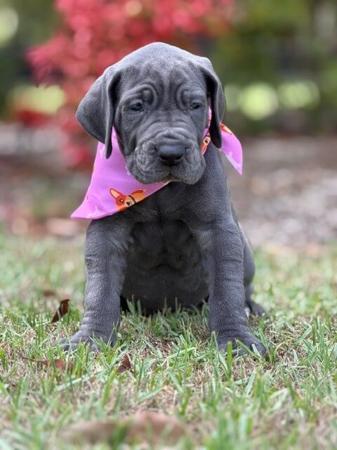 Pedigree Great Dane Pups – ANKC registered from imported European Bloodlines. Sweet and friendly blue female pup - ready 03/04/2026 Our cherished Danes have blessed us with the most sensational litter of puppies. Stunning blues with rich deep blue coats, blues and blue merles with stunning deep blue coats super pretty faces. Our pups are known for their strong regal presence and goofy lovable natures. Well handed from day dot, we raise these cherubs in our living room amongst the busy bustle of family life, making these guys perfect for fur-families looking for their next fur-baby. All our pups are vaccinated, microchipped, wormed and vet checked, and come with Pedigree Limited Register papers. Ready for their new homes on 3rd April 2026 Their parents are super friendly, bright healthy delightful Danes that share this journey called life with us. We live on the beautiful Mornington Peninsula on acreage where our Danes love to play and frolic around. They are inside/outside, they love to swim, sleep, zoom (short lived haaa), sleep.. sleep a bit more.. and cuddle after a big day. About us - Saphiredanes are fully registered ethical breeders with Dogs Victoria for over 20 years. All of our Danes and pups are pedigree registered. Our pups are raised in the home as part of the family and not in cages. See saphiredanes of Winterwood Stables - Great Danes in Australia on FB for more photos and videos