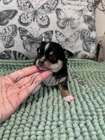 Jendrika Chihuahuas has some gorgeous new puppies out of champion and imported bloodlines. These puppies are stunning not just in looks but also in temperament, inheriting their dad's happy-go-lucky personality (New Polish Import: Jendrika Jumanji Super Stars of Happy Puppies) Rumour & Jumanji Litter (Ready Early May 26) Black Tricolour Smooth Coat Boy - Reserved Particolour Smooth Boy Coat - Reserved Pandora & Jumanji Litter: All 5 Puppies Reserved New litters Due April & May 2026 We specialise in smooth & longcoat Chihuahuas, and are devoted to producing quality puppies for pet, breeder, and show homes with exceptional temperaments. Our puppies will come vaccinated, vet checked, microchipped, wormed, DNA tested for parentage, and ANKC pedigree papers, with mains to approved show/breeder homes only. Pet puppies are desexed before leaving and ready for their new homes at 12 weeks old. Every puppy comes with an extensive puppy pack, including 2kg of puppy kibble, and lifetime support. Our puppies are a part of our family and are raised in our home with our children and extended family, so they are very well socialised by the time they are ready for their new homes. They will have started toilet training on puppy pads as well as crate training from a young age also. Please check the links below for photos of parents and past puppies - http://facebook.com/jendrikachihuahuas https://jendrika.com/