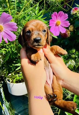 I currently have a litter of smooth haired miniature dachshunds, they are 9 weeks old , within the litter there is 1 shaded red girl that is now available to a loving pet home. Holly is looking for a family that can be mostly around with her, a happy, outgoing little girl, she will thrive in a home where she can be around her people and I’m sure if there’s already another dog in the home she will love the company. Holly is up to date with her vaccination, she has been microchipped and is well on the way to learning the basics of toilet training. I’ve started introducing crate training as well as socialisation with people, older dogs, new environments. My puppies are raised in my home. Please feel free to reach out if you would like more information. I would prefer to have a conversation over the phone but initially text messages are fine also.