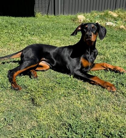 Now taking expressions of interest in a litter to Sage due in mid May 2026 . This is a repeat breeding with a dog I sourced after extensive search to find the best suitable dog available that was both a good temperament and good genetic match up for Sage . The dog I chose was Cato who was bred by Canberra breeder Julie Rebbeck of Redshift Dobermans .The recent litter from this pairing produced 9 beautiful pups who are now nearing 12 months old. I have regular contact with all the new owners and they are all super happy with their dogs and all report what a beautiful temperament they have. Some info on Sage .Sage is 5 years old and belongs to my son and is a bitch I bred from my bitch Stella . Sage just like her mum Stella has a beautiful temperament and very affectionate , great with kids and other dogs , and everyone that meets her loves her. She is your typical velcro doberman always wanting to be near her owner, but well adjusted and can happily be on her own and very laid back. Cato also has a beautiful temperament and is a great family dog . Both Sage and Cato have been DNA profiled and matched to give the best chance of breeding healthy long living pups with great temperaments Both have dobes in their ancestry that have lived long healthy lives many into double figures. I have done a family tree of Sage and Cato (available to view) and found that of 33 dogs I could track details for 16 lived 10 years or longer with 7 others still alive and approaching 10