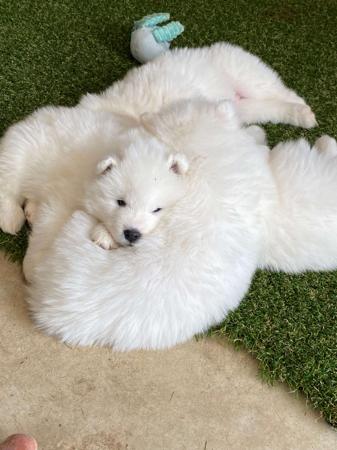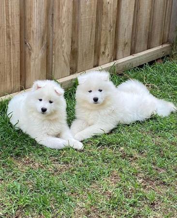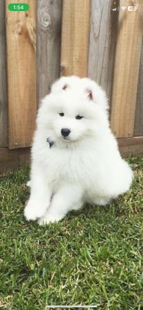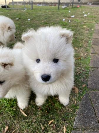 PUPPIES DUE IN LESS THAN 2 WEEKS Samoyed Puppies – Expressions of Interest Open We are excited to announce an upcoming litter of beautiful Samoyed puppies! While the litter has not yet been born, we are now taking expressions of interest from loving, committed homes. Samoyeds are known for their friendly nature, stunning white coats, and affectionate personalities—perfect companions for families and individuals alike. Our puppies will be raised in a caring home environment, well-socialised, and provided with the best start in life. Expected details: - Purebred registered Samoyed puppies - Raised in a family environment (exposed to young children) - Health checked and cared for with love - Parents fully health tested - DNA tested If you’re interested in welcoming one of these gorgeous pups into your home, please get in touch to register your interest or to learn more. Serious enquiries only—loving homes are a must! Photos of previous Sunnburst Puppies