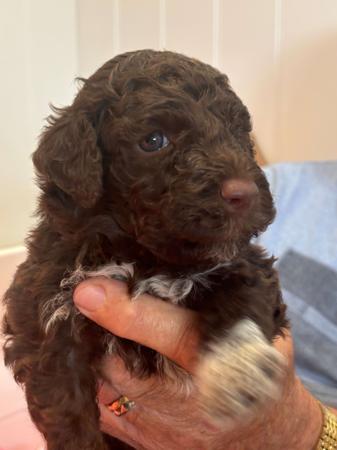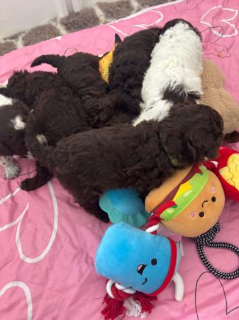 Our clever girl Bella has had Seven beautiful healthy puppies arriving in the early hours of Saturday morning 21st March 2026 Everyone is doing really well. Bella was mated with a vey handsome boy Named Luca from the Invacale Kennels in NSW. He is an Australian Champion, a very handsome Chocolate boy which has produced some gorgeous chocolate and white puppies, and mainly chocolate with either white socks or white chest. This will change slightly as they grow. . Both mum and dad have fabulous temperaments which is our main goal, breeding happy, healthy and well adjusted puppies ready for their forever homes. We will be giving all the puppies lots of love and attention over the next few weeks. Mum and dad both have had all the health checks including DNA testing and Hip and Elbow scoring which are all good.The puppies will include Registration, worming, microchipping, socialising and lots of family cuddles. And of course a puppy pack to take home. If you would like more information please reach out. Puppies will be ready for their new homes around 21 May. Price on Application