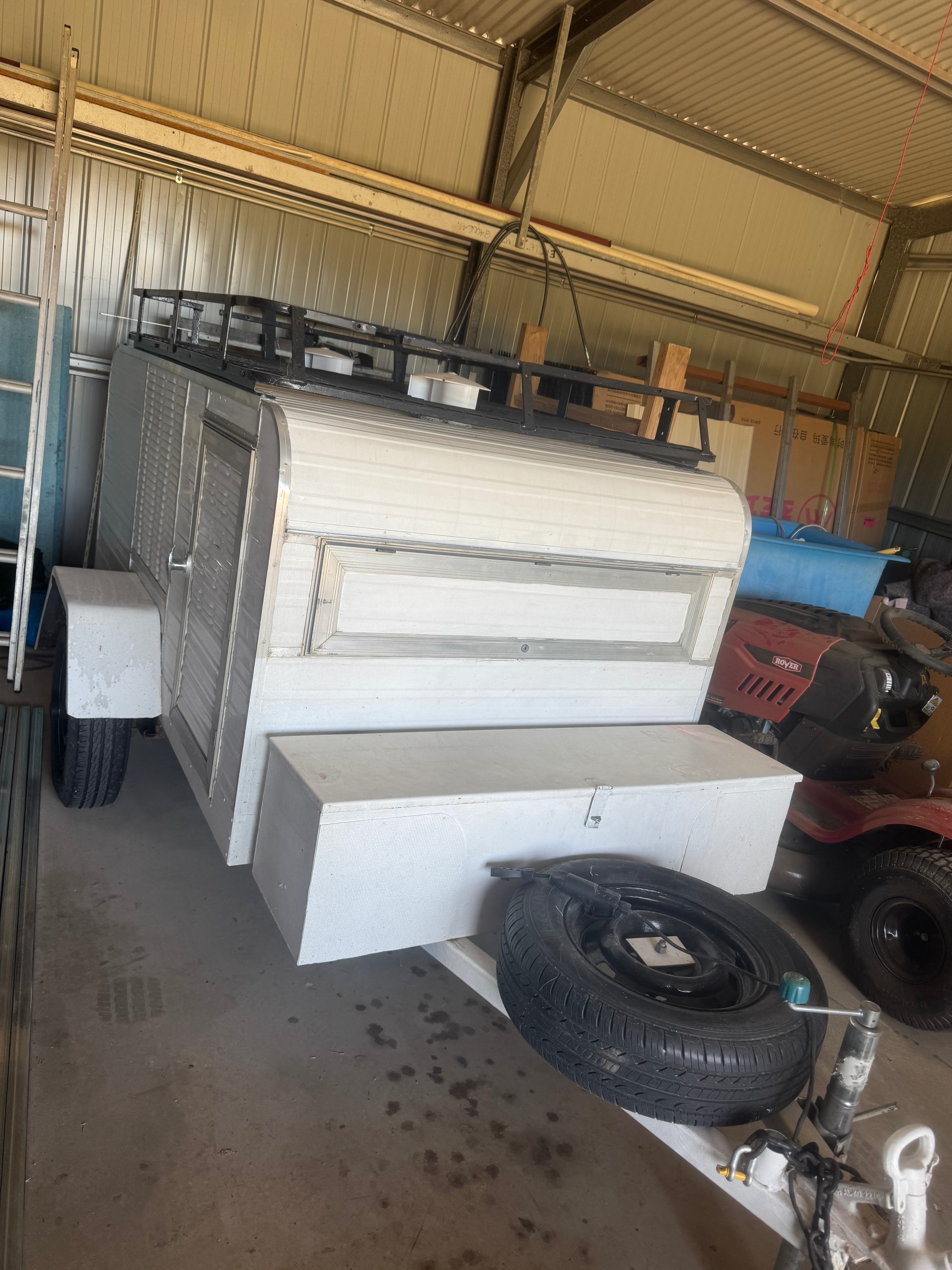 *‘False roof’ above dog crates to allow for storage of gazeebos (30cm high)